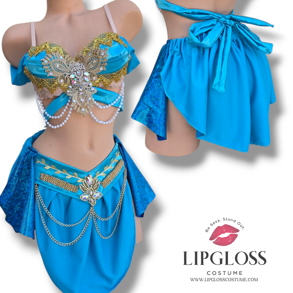 Ready to ship Blue Jasmine Gold Rhinestone Woman's Halloween Costume
